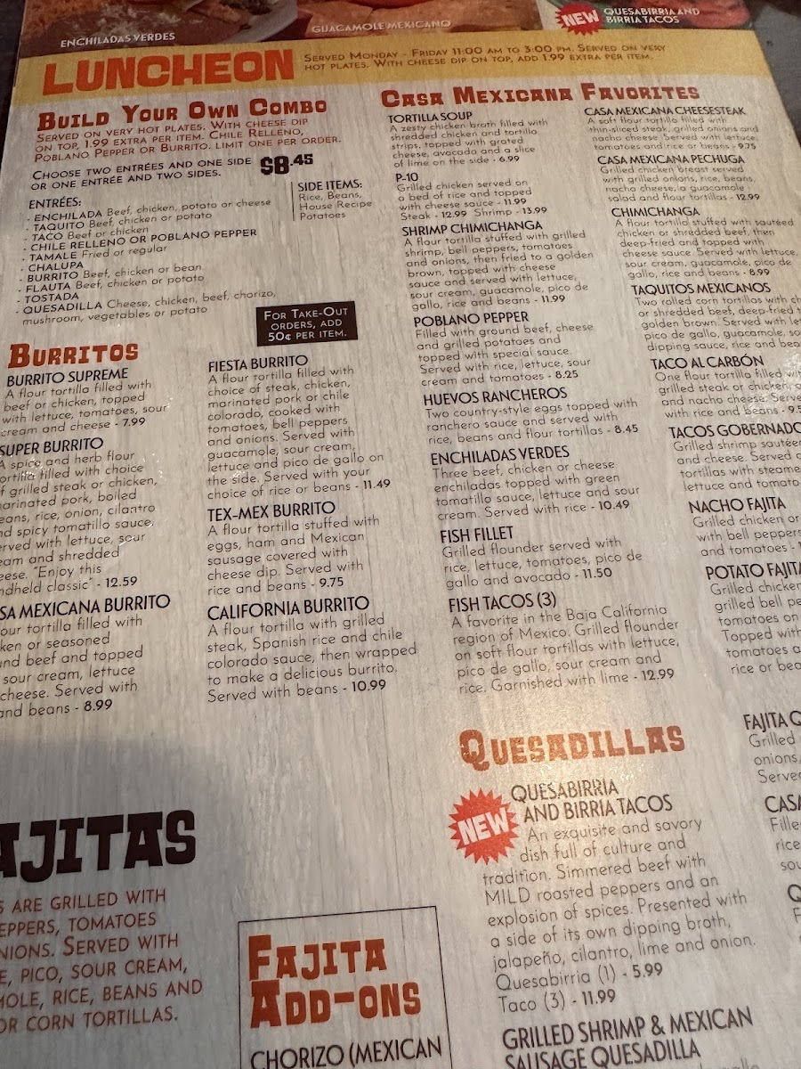Casa Mexicana Southaven Menu